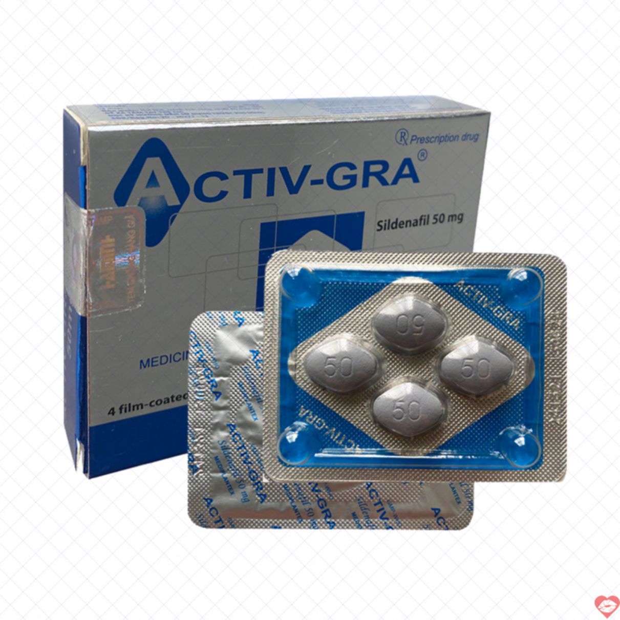 Thuốc Activ-GRA 50 thuốc tăng cường cương cứng dương vật, tăng ham muốn tình dục, hỗ trợ tăng cường khả năng sinh lý ở nam giới hiệu quả. Thuốc chứa thành phần chính là Sildenafil citrate hàm lượng 50mg giúp nam giới nhanh chóng lấy lại bản lĩnh và sức mạnh thời trai trẻ.