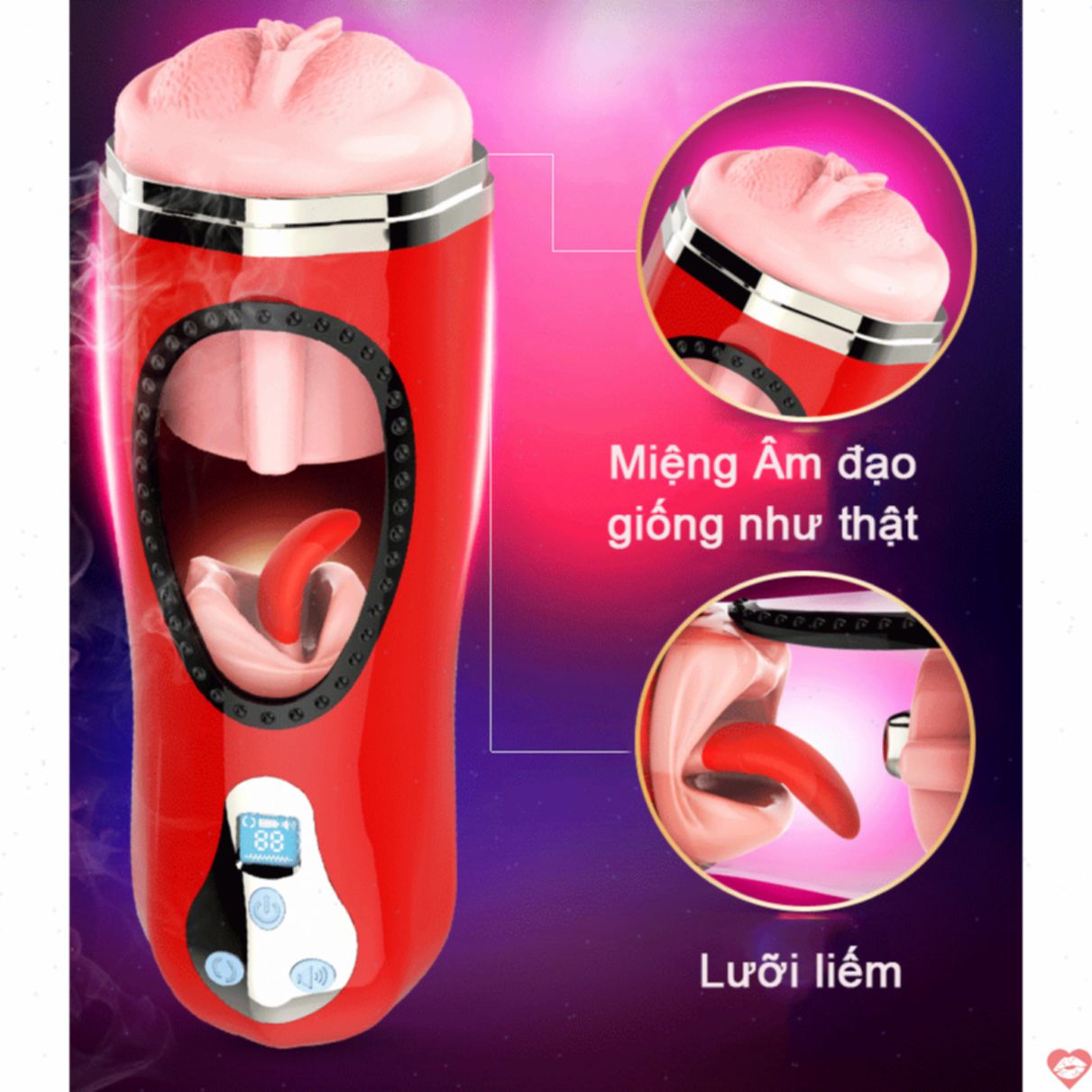 • Đặc điểm: Thiết kế sản phẩm mô tả giống như âm đạo của chị em phụ nữ, miệng hồng hào, 7 chế độ rung, có rên, dùng sạc, chống thấm nước tốt.