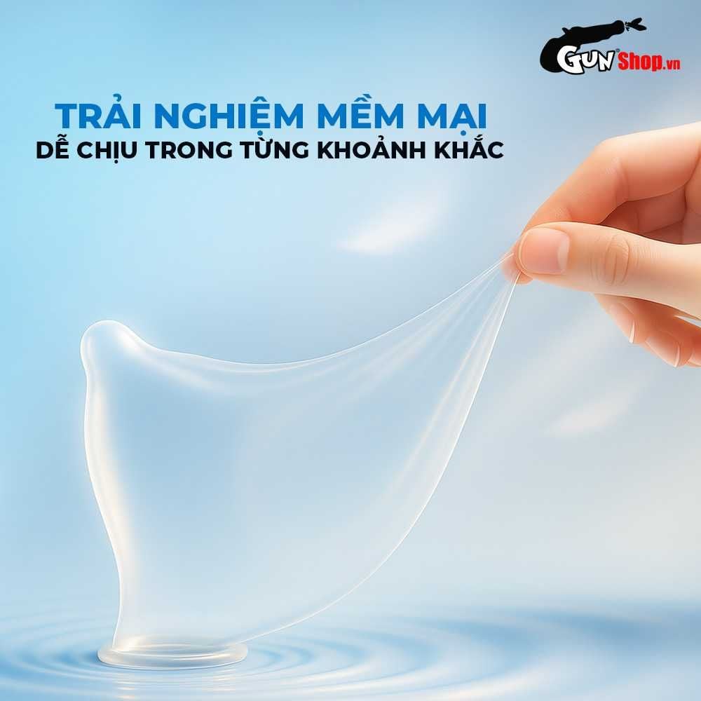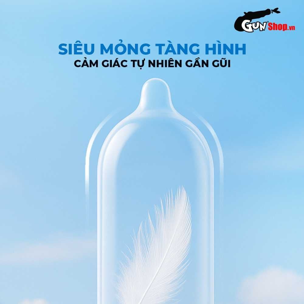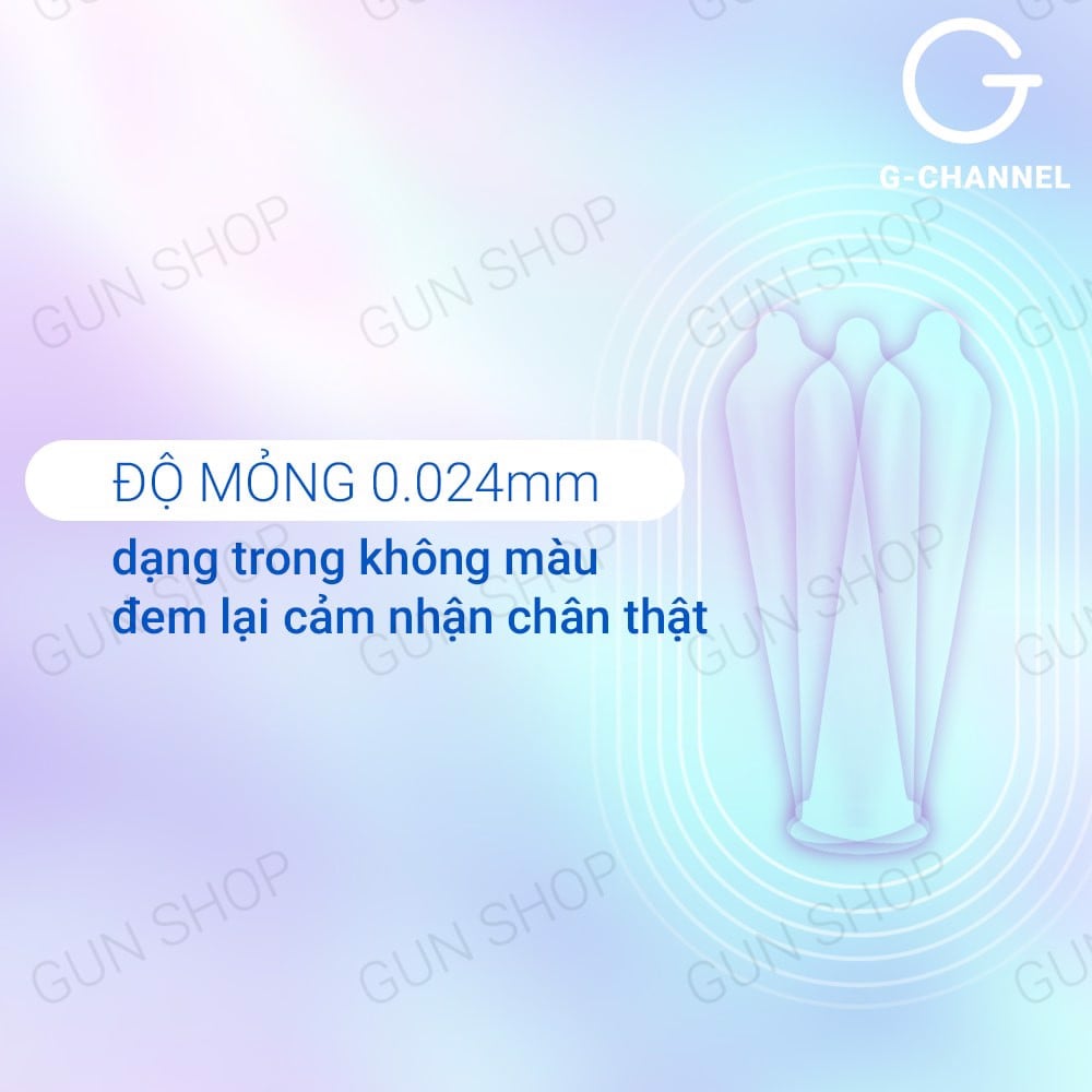- Bao cao su có độ mỏng chỉ 0.024 mm, dạng trong không màu giúp đem lại cảm giác chân thực nhất cho các cặp đôi. Nhờ đó mà chuyện ái ân của bạn sẽ thêm thăng hoa và thỏa mãn.