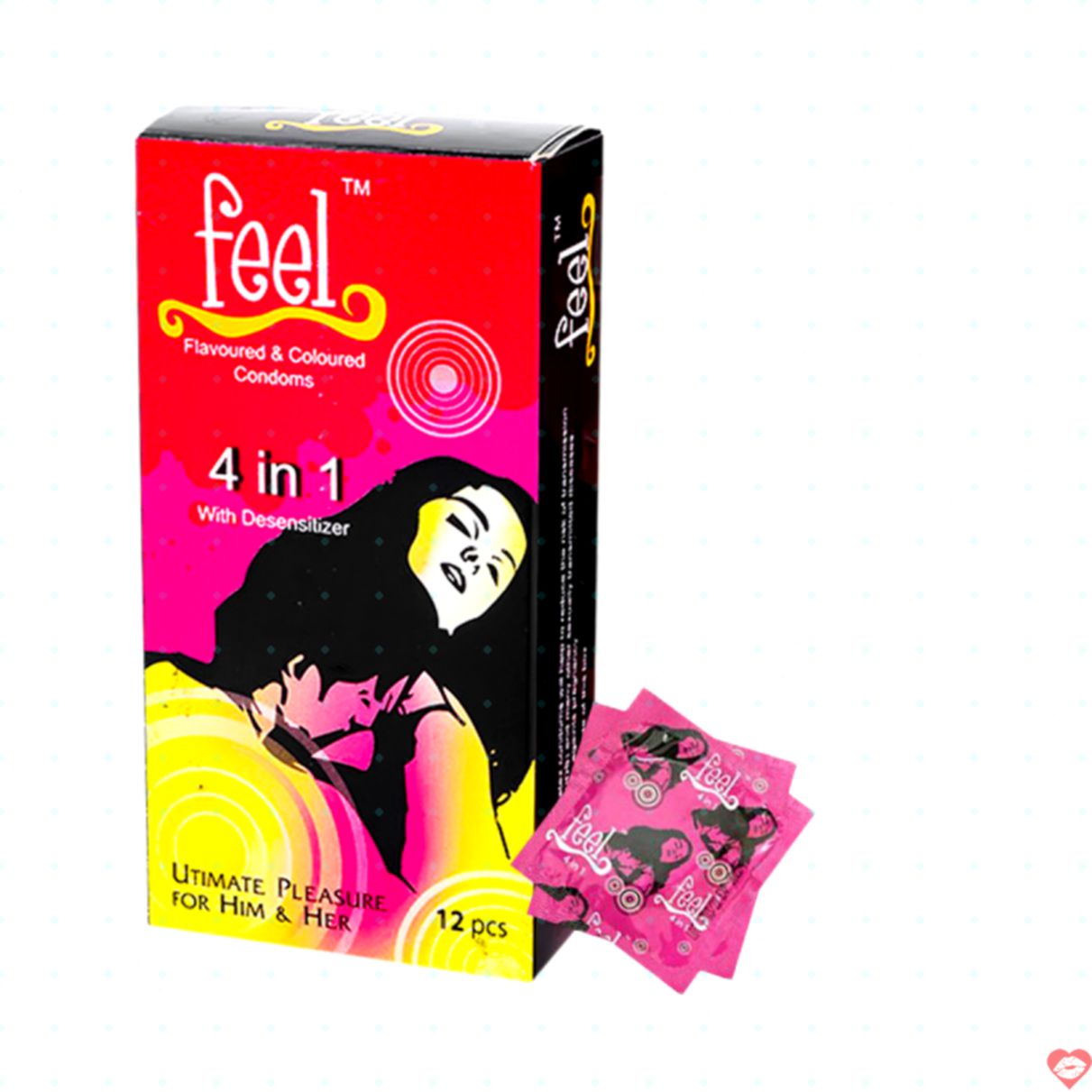 Feel 4 in 1 là sản phẩm bao cao su kết hợp đa tính năng được sản xuất từ Malaysia. Nhằm đem lại những cảm xúc thăng hoa khi lâm trận, sản phẩm được tích hợp đến 4 tính năng vàng trong 1 cái bao cao su.