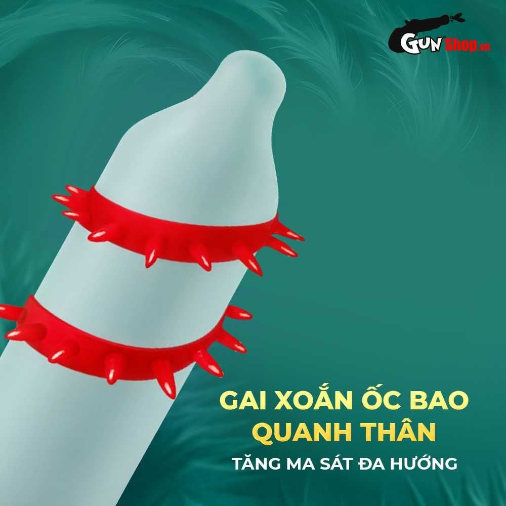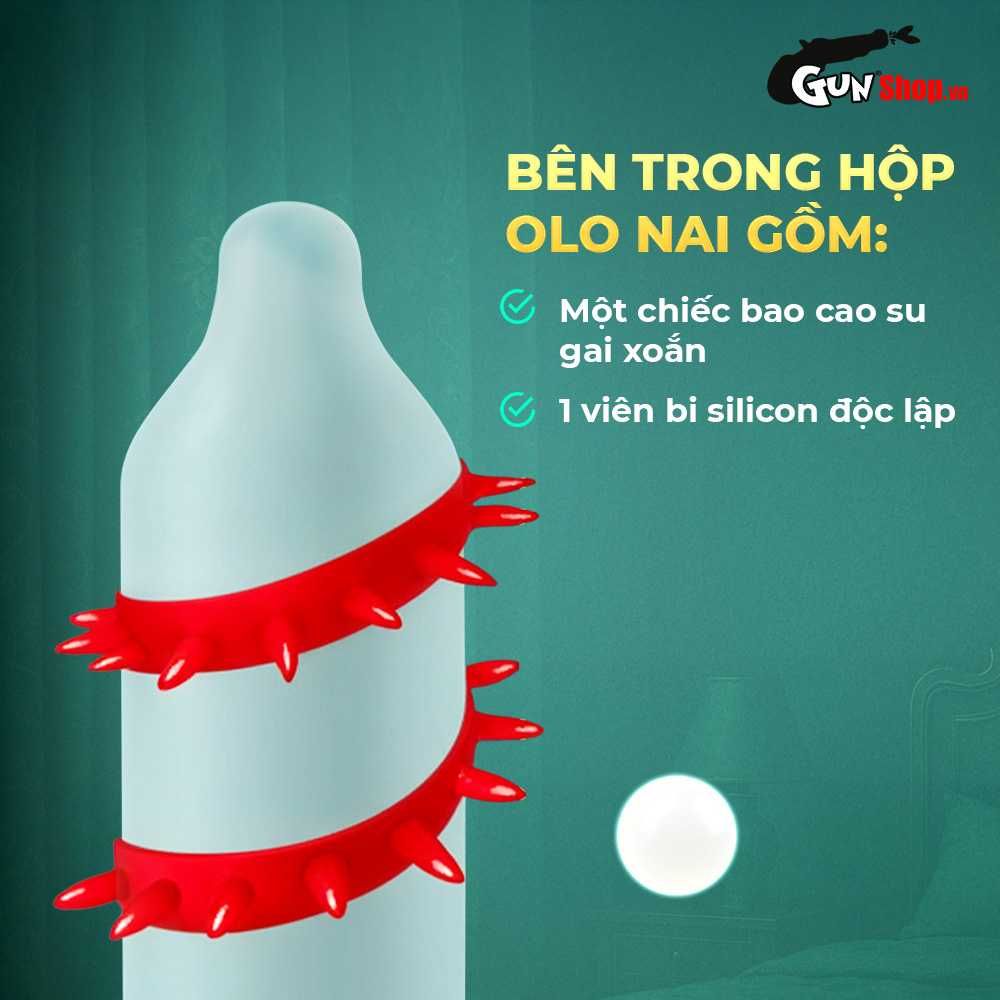 - Thông tin: Bao cao su OLO Kỳ lân - Gai xoắn sở hữu thiết kế độc lạ, mang đến cảm giác kích thích mạnh mẽ cho người dùng khi quan hệ. Với nhiều gai xoắn trên thân bao, sản phẩm giúp tăng thêm ma sát lên thành âm đạo, tăng thêm khoái cảm và nhanh chóng đưa nàng lên đỉnh thăng hoa.