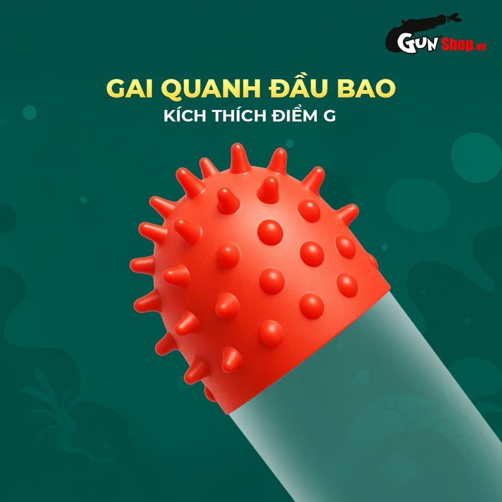 - Đặc điểm: Gai dài kết chùm tua tủa xung quanh phần đầu bao; tăng thêm kích thích lên điểm G, đôn chiều dài.