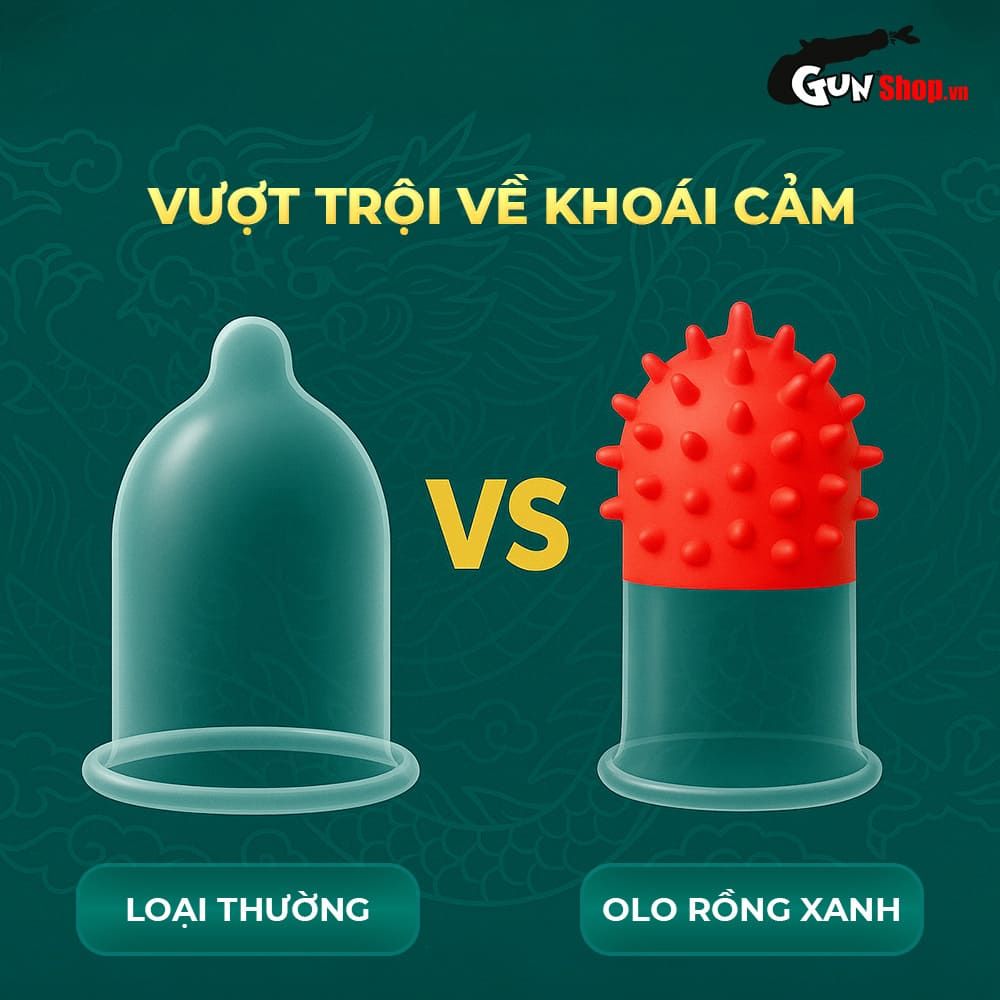 - Thông tin: Bao cao su OLO Rồng xanh với thiết kế gai chùm đầu thân bao tạo cảm giác đột phá mới lại cho các cặp đôi. Cùng với vòng gai cao su mềm mại dễ dàng ma sát vào thành âm đạo và điểm G của "cô bé". Chắc chắn, sau khi sử dụng sản phẩm này cả hai sẽ có những phút giây khó quên.