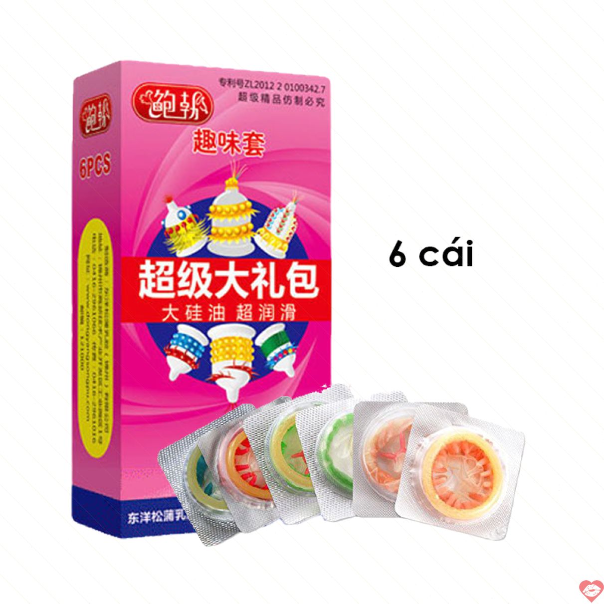Không chỉ dừng lại ở đó, đây còn là loại bao cao su được tích hợp 6 thiết kế gân, gai, bi, râu đa dạng trong 1 hộp. Với các kiểu dáng khác nhau và độc đáo đem lại cho mỗi cuộc yêu của bạn một trải nghiệm thú vị mà bất cứ cặp đôi nào cũng muốn dành trọn cho nhau.