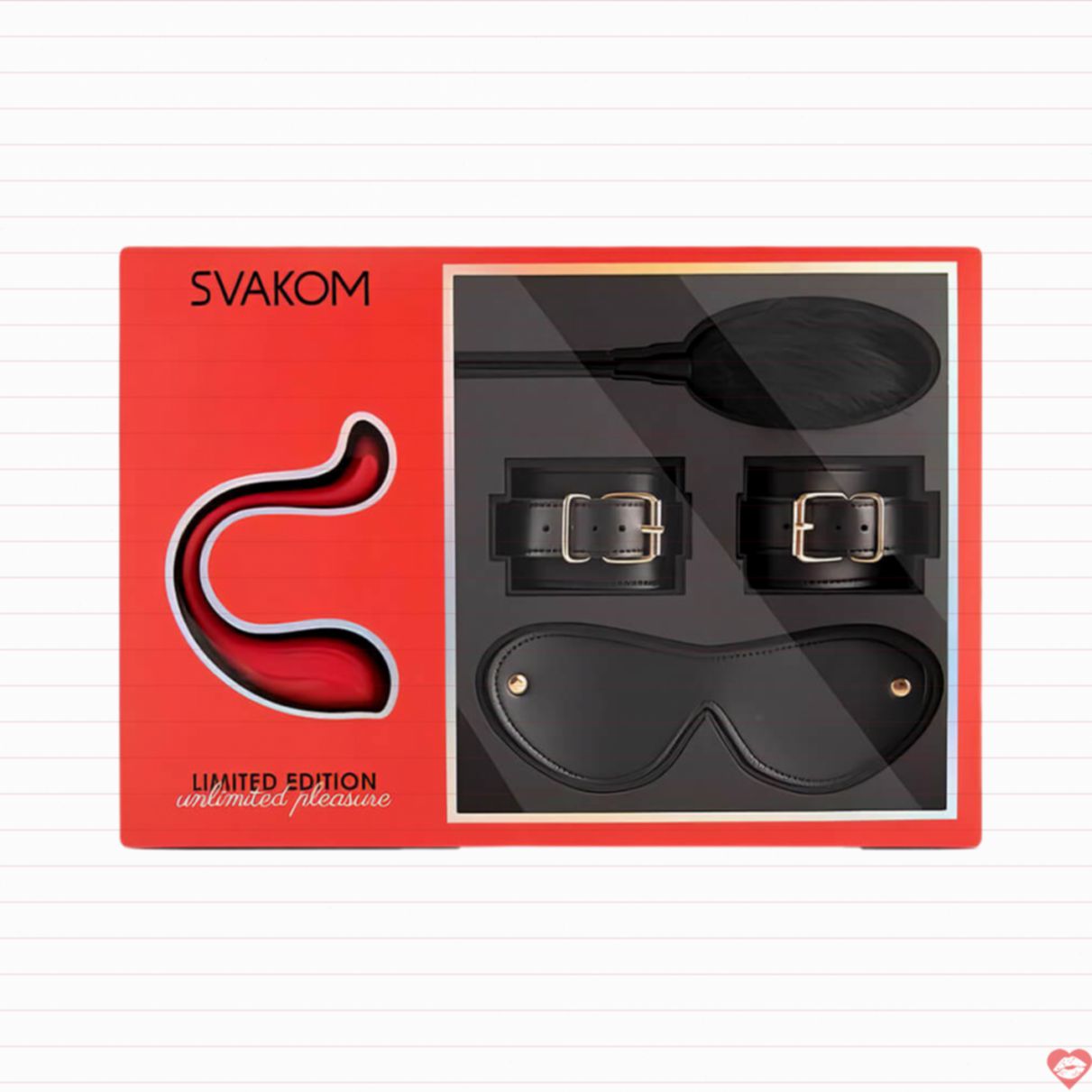 - Thông tin: Bộ dụng cụ đồ chơi BDSM Svakom Limitied Edition bao gồm máy massage điểm G cao cấp Phượng hoàng lửa Svakom Phoenix Neo và các dụng cụ bạo dâm BDSM bao gồm bịt mắt, còng tay, chổi lông vũ kiêm roi da được làm bằng chất liệu da cao cấp và các chi tiết bằng thép không gỉ sáng bóng, trơn tru sẽ mang đến cho cặp đôi những trải nghiệm tình dục đầy hào hứng, nóng bỏng, thỏa mãn trọn vẹn cho cuộc vui phòng the của những cặp đôi.