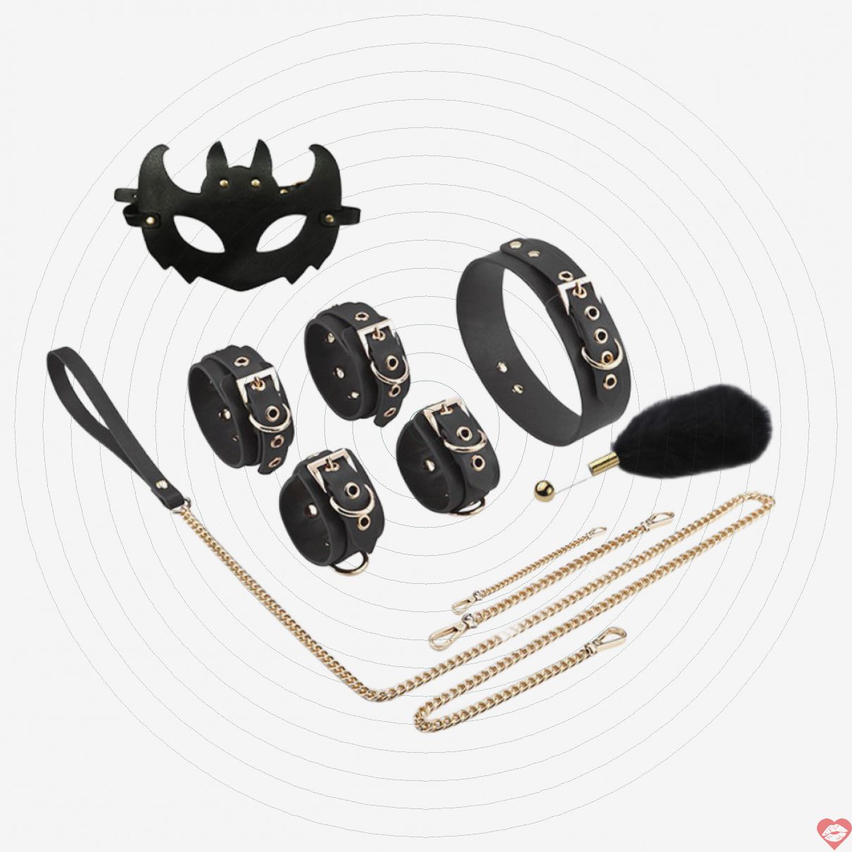 - Đặc điểm: Gồm 1 bộ nhiều món khác nhau sử dụng trong quan hệ tình dục như còng tay, còng chân, mặt nạ, khóa cổ, roi da, khóa hàm, dây khóa tay chân, nút ngậm miệng.
