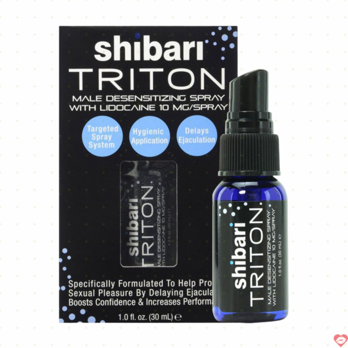 - Thông tin: Chai xịt Mỹ Shibari Triton có chứa Lidocaine 10% gây tê nhẹ và cực kì an toàn, giúp nam giới lấy lại tự tin và đẳng cấp phái mạnh, kéo dài thời gian quan hệ lên nhiều lần, chống xuất tinh sớm hiệu quả. Sản Phẩm chai xịt chống xuất tinh sớm cao cấp Shibari Triton Spray được Hiệp Hội FDA của Mỹ chứng nhận là sản phẩm tốt nhất và bán chạy nhất tại Mỹ. Thuốc có dạng chai xịt loại cao cấp, không mùi, không vị, không chất bôi trơn, không dị ứng, chất lượng tốt an toàn và phù hợp với tất cả nam giới.