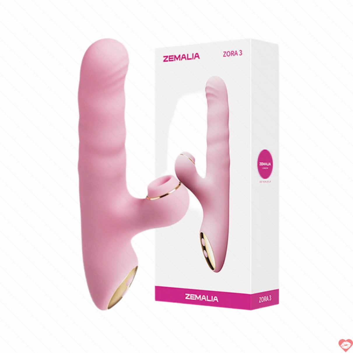 - Thông tin: Zemalia Zora 3 được tích hợp những tính năng hiện đại như 3 chế độ xoay, 10 chế độ rung và bú mút, massage lên âm vật. Đây chắc chắn sẽ là món đồ chơi thỏa mãn nhu cầu sinh lý các bạn nữ một cách sung sướng nhất. Sản phẩm có thiết kế với phần nhánh nhỏ kích thích âm vật được cấu tạo hình dáng như một giác hút. Còn phần nhánh to thì được mô phỏng tương tự như dương vật với phần đầu khấc riêng biệt và nhiều gân nổi kích thích.