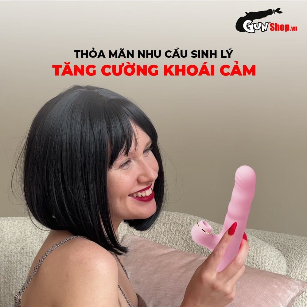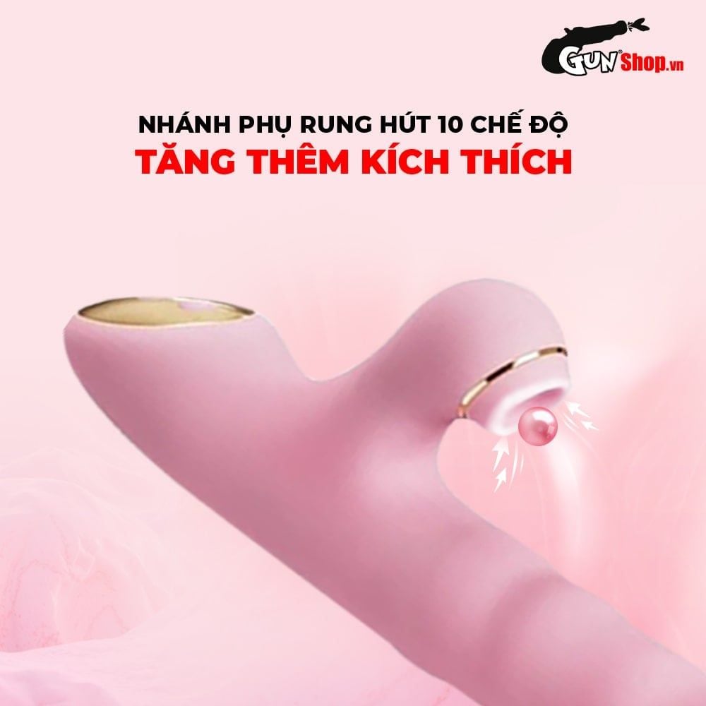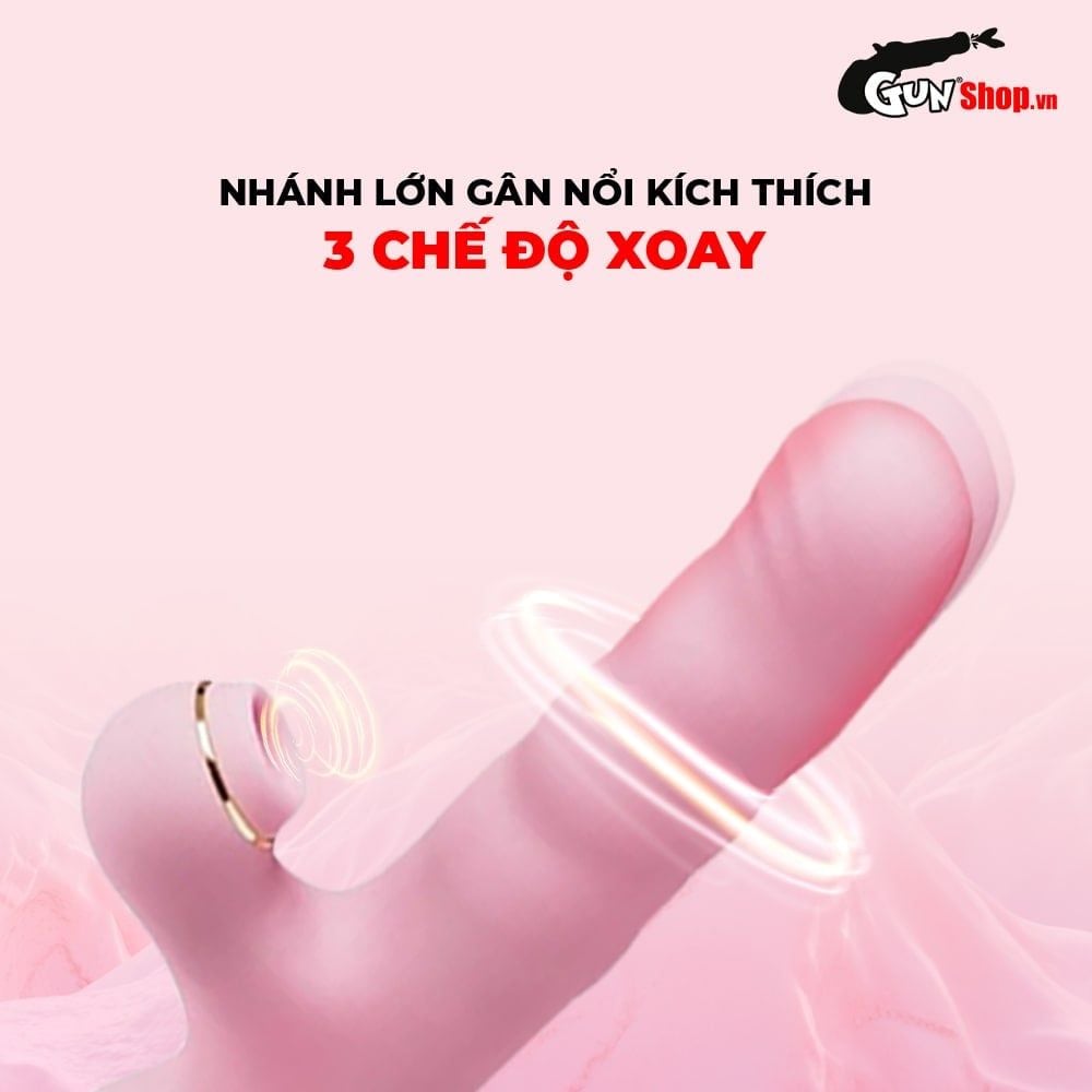 - Đặc điểm: Thiết kế 2 nhánh, nhánh lớn có gân nổi, 3 chế độ xoay, nhánh nhỏ 10 chế độ rung và bú mút, massage lên âm vật, dùng sạc, chống thấm nước.