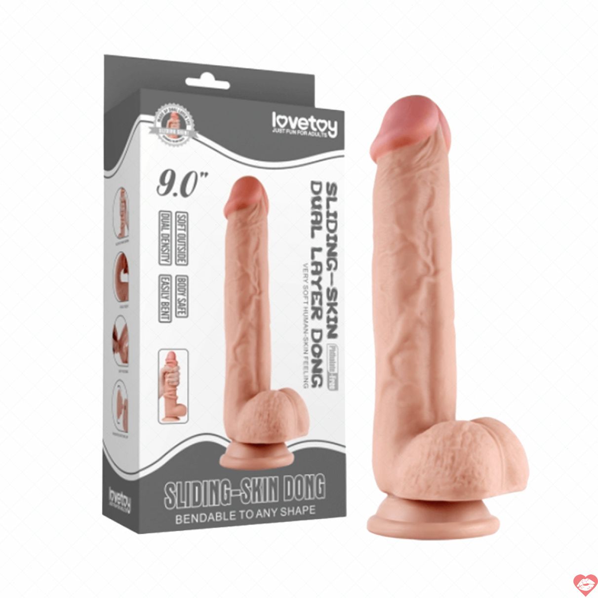 - Thông tin: Lovetoy Sliding Skin Dong 9.0" với kích thước siêu khủng là một trong những mặt hàng kinh doanh mũi nhọn của hãng đồ chơi tự sướng Lovetoy. Sản phẩm mang nhiều sắc thái tình dục làm chị em tăng hứng khởi khi cầm nắm trong tay và thủ dâm để đạt khoái cảm tuyệt vời. Đặc điểm nổi bật làm nên sức hút của sản phẩm là được làm bằng chất liệu da trượt hai lớp nên có cảm giác y như đang cầm nắm một dương vật thực tế, cho chị em lâng lâng với cảm giác mềm mại và kích tình cực đỉnh. Ngoài ra, phần đế của sản phẩm có thể tháo rời cho bạn tùy ý sử dụng nhiều kiểu.