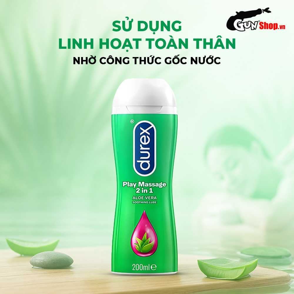 Gel bôi trơn massage Durex Play 2in1 là loại gel bôi trơn dành cho gia đình. Gel bôi trơn Durex Play 2in1 có tinh chất lô hội, giúp dưỡng da, chống kích ứng da, phù hợp với da nhạy cảm