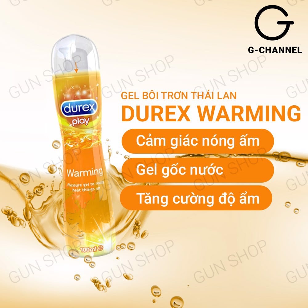 Gel bôi trơn Durex Warming là một sản phẩm được rất nhiều khách hàng tin tưởng và đánh giá cao. Đây là loại gel thuần nước, tăng cường độ nhờn và làm ẩm "cô bé". Nhờ có nó, cuộc "yêu" trở nên đơn giản cũng như dễ dàng hơn rất nhiều.