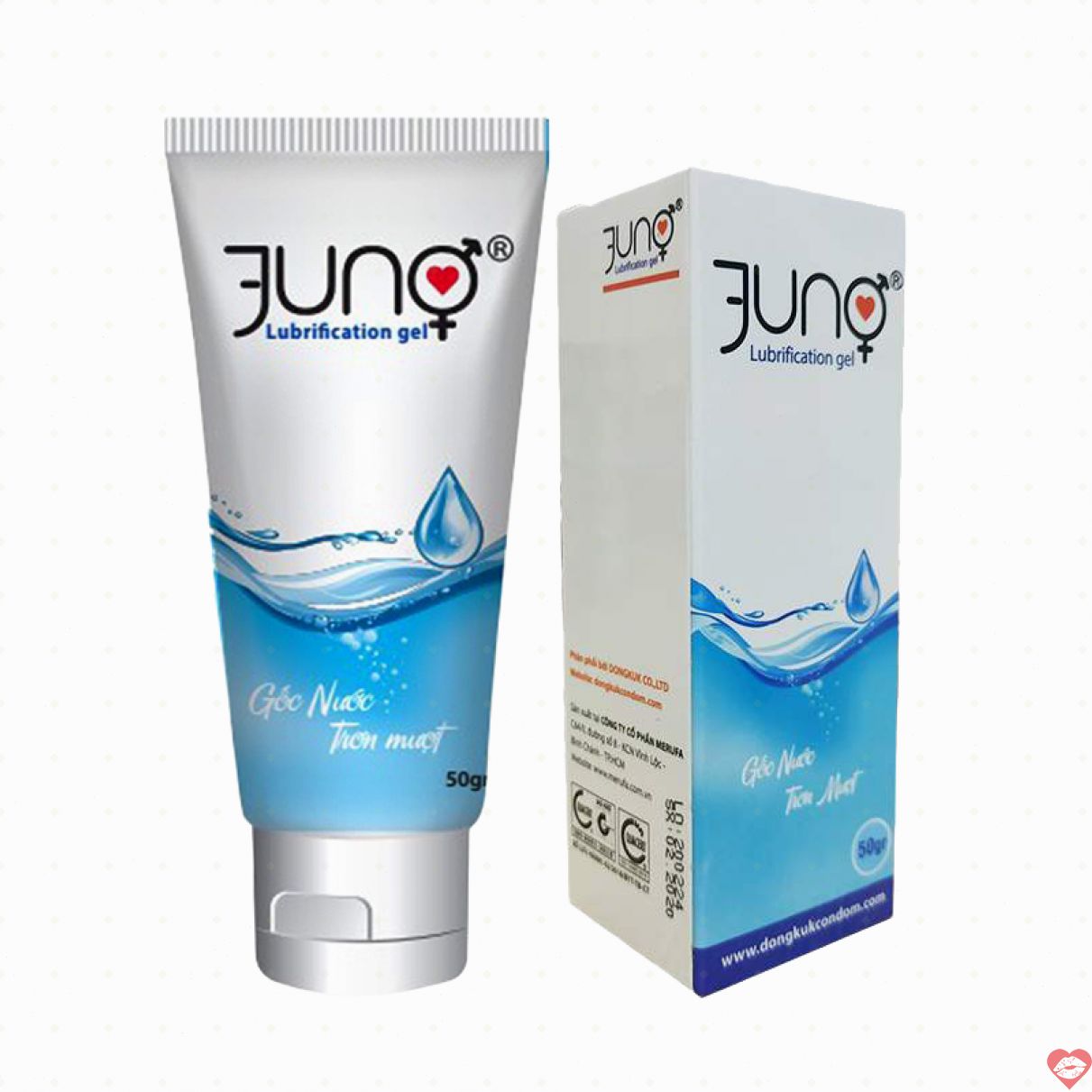 - Đặc điểm: Gel bôi trơn Juno hộp 50g là một trong những loại gel bôi trơn gốc nước có thành phần giống với chất nhờn tự nhiên và tan trong nước. Gel bôi trơn Juno phù hợp với các chị em có âm đạo vùng kín khô rát hoặc tiết ít chất nhờn, khiến cô bé ướt át và quyến rũ. Juno Lubrification thuộc dạng gel bôi trơn không màu, không mùi, không vị, không chứa chất diệt tinh trùng và có thể rửa sạch dễ dàng bằng nước thường.