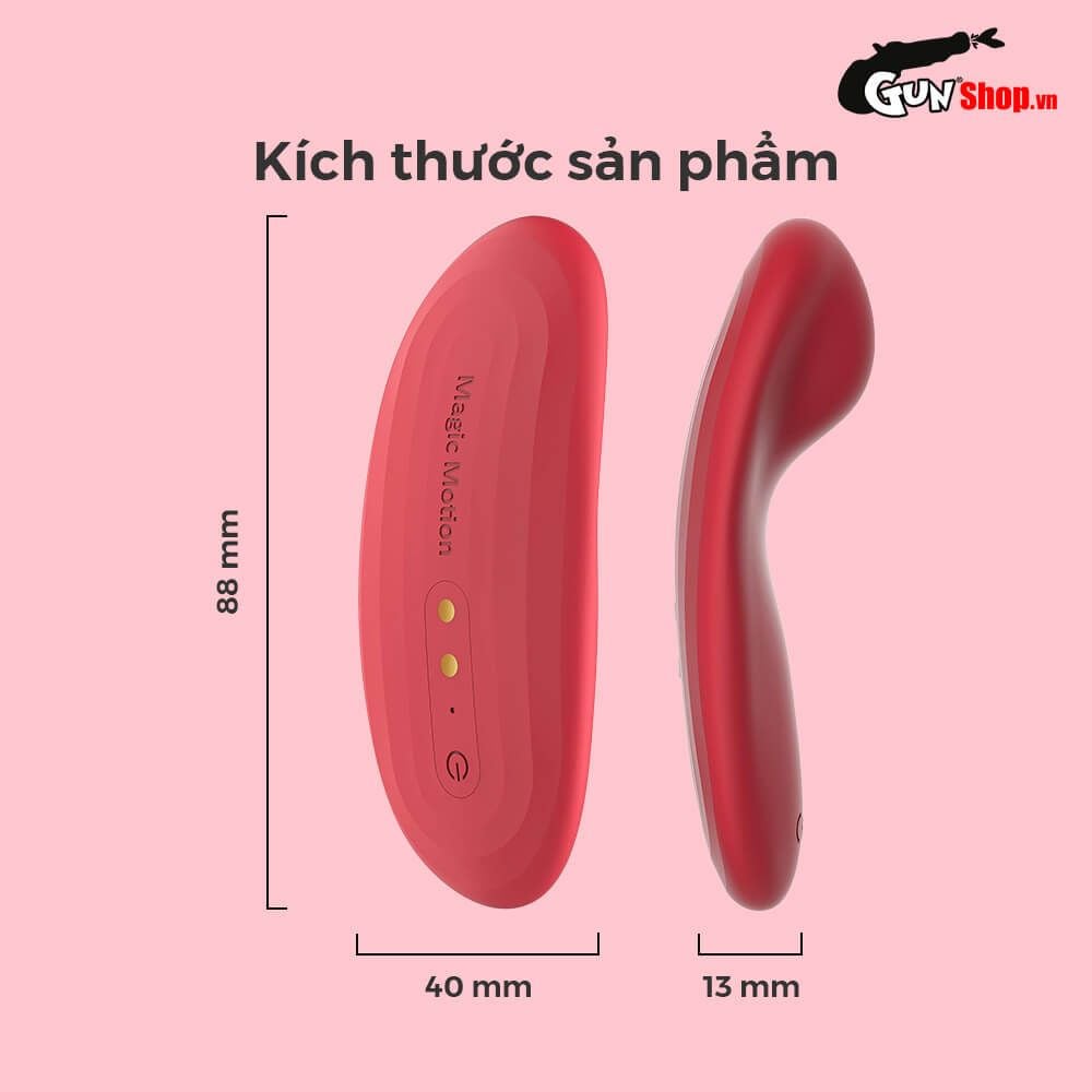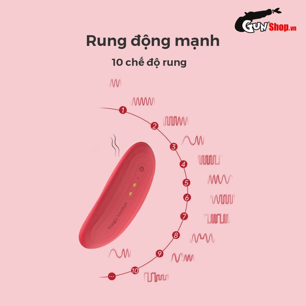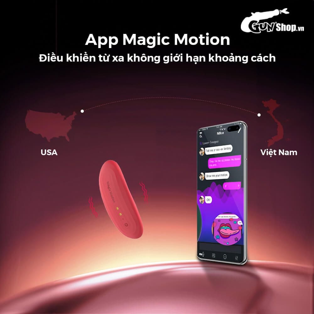 - Cách dùng: Vệ sinh sản phẩm trước khi dùng. Tải app Magic Motion về điện thoại. Nhấn và giữ nút để khởi động máy. Bật Buletooth của điện thoại lên, sau đó kết nối với ứng dụng Magic Motion. Nhấp vào chế độ từ xa và tạo ID riêng. Chia sẻ ID riêng của bạn với đối tác của bạn, ngay cả khi họ ở thành phố, quốc gia khác nhau, để đối tác có quyền kiểm soát tốc độ và kiểu tạo ra một khoảng thời gian vui vẻ. Nếu bạn không dùng qua App trên điện thoại thì có thể điều chỉnh chế độ rung bằng nút nhấn trên thân máy.