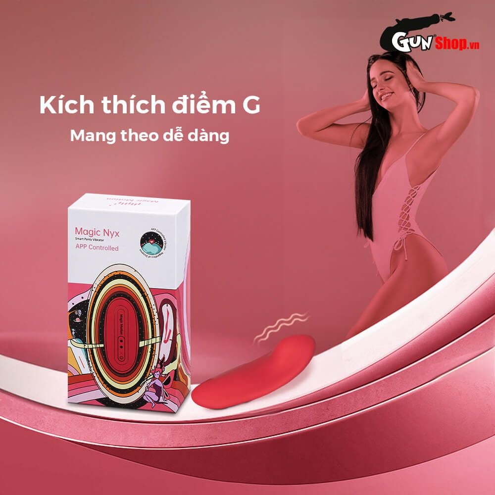 - Thông tin: Magic Motion Nyx là máy massage kích thích với thiết kế nhỏ gọn có thể để trong quần lót cực độc đáo nhưng cũng vô cùng kích thích. Điều khiển từ xa thông qua ứng dụng bất kể khi nào và bất kể ở đâu. Tích hợp tính năng tương tác khác như điều khiển trò chơi và âm nhạc với 10 chế độ rung mạnh mẽ khác nhau.
