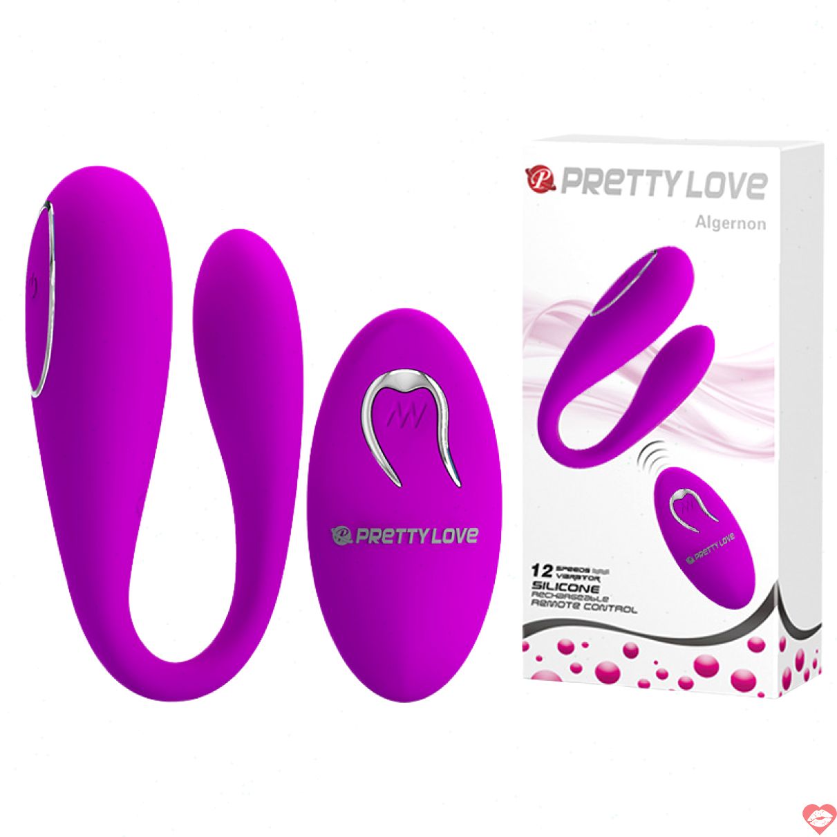Máy massage điểm G Prettylove Algermon thiết kế hình C, kích thước nhỏ gọn nên có thể đặt trong quần lót và có remote điều khiển từ xa thích hợp cho các nàng thủ dâm nơi công cộng.